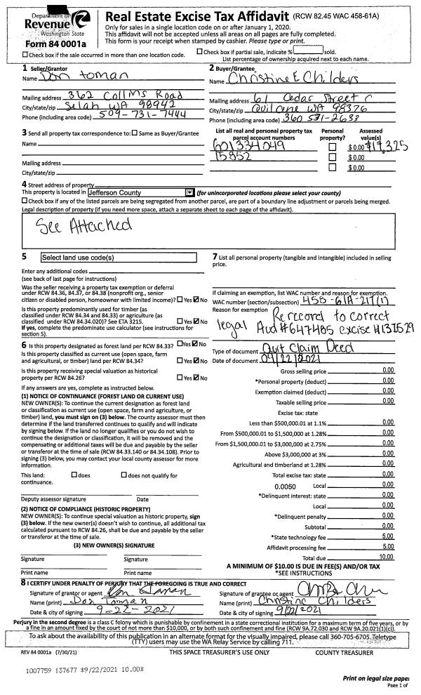 | Mailing Address: | 166 MADRONA VISTA PLACE PORT LUDLOW, WA 98365-8748 | % Ownership: | 100.0000000000% |