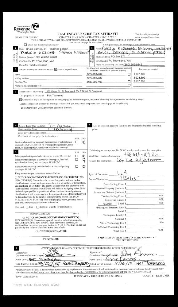 | 5 | 01/09/2007 | BLA | Boundary Line Adjustment | RICKWALL, DIETER R/IRIS R | RICKWALL/WHEELER/SHERMAN | | | $0.00 | 109324 | 0 |