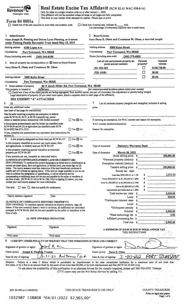 | 2 | 04/23/2015 | SWD | Statutory Warranty Deed | ARNOLD T NEUBAUER TRSTE | MARK J & CINDI L HAWLEY | | | $278,000.00 | 123178 | |