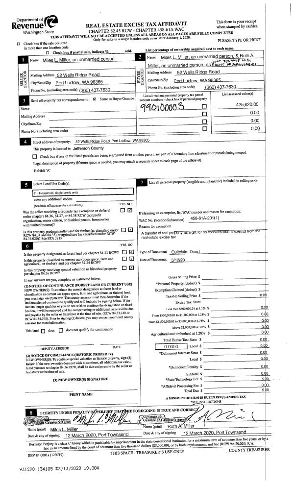 | Mailing Address: | 44 GARTEN RD PORT LUDLOW, WA 98365-9514 | % Ownership: | 100.0000000000% |