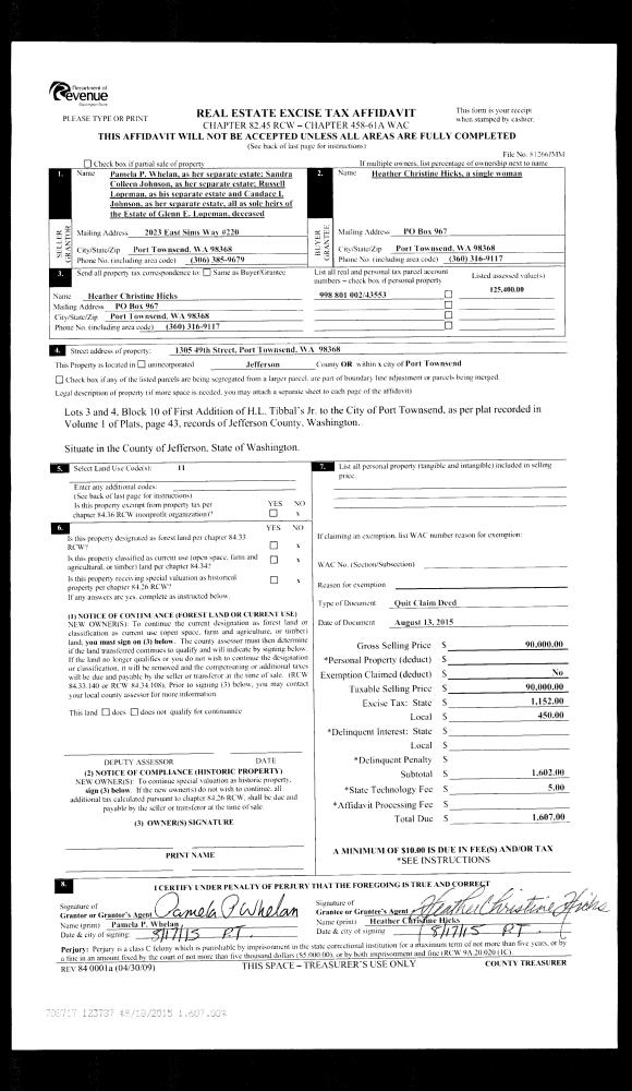 | 2 | 3375-1535F | High Bank Wtrfrt along Hood Canal | 0.0000 | 0.00 | 0.00 | 0.00 | 0.00 | $198,214 | $0 |