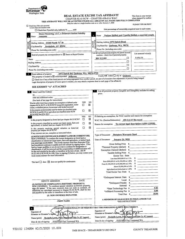 | 2 | 05/03/2021 | SWD | Statutory Warranty Deed | MICHAEL E CLOSSER | JAMES DICKASON | | | $895,000.00 | 136667 | |