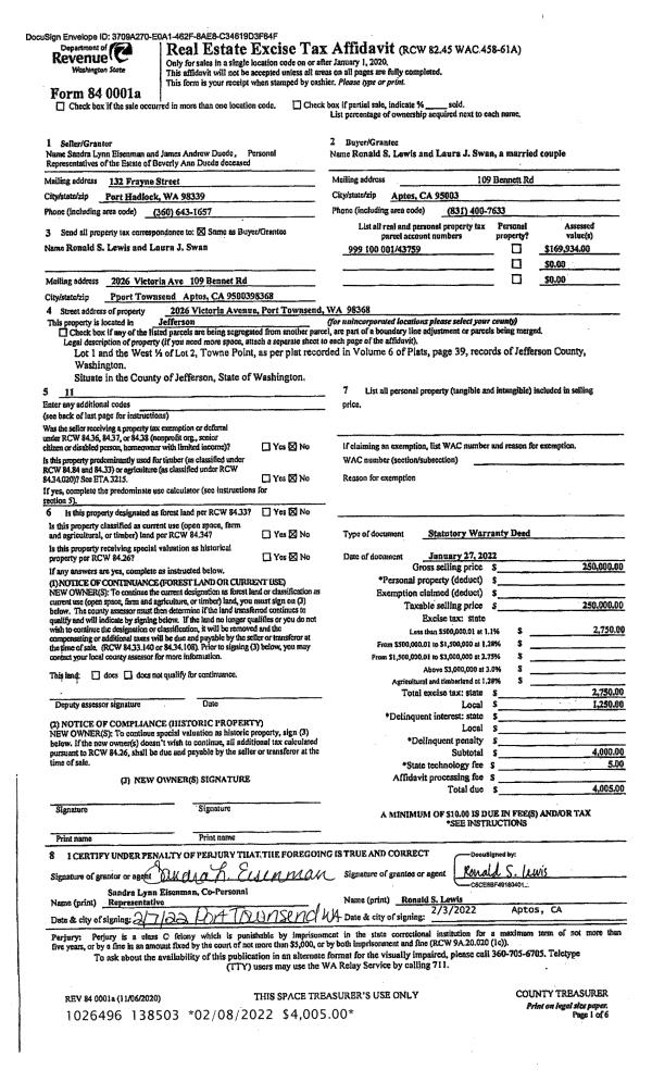 | 1 | 02/20/2004 | SWD | Statutory Warranty Deed | KROTZER, JOSEPH P & LISA | STEELE, DANIEL JENSON | 0 | 0 | $237,000.00 | 99540 | 0 |