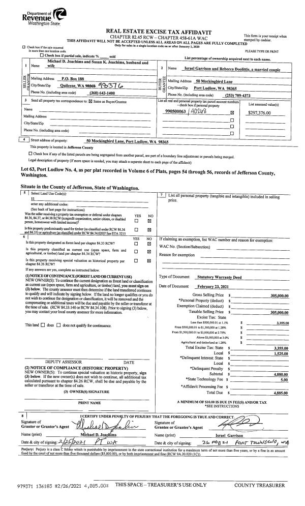 | Mailing Address: | 4071 PARADISE BAY RD PORT LUDLOW, WA 98365-9241 | % Ownership: | 100.0000000000% |