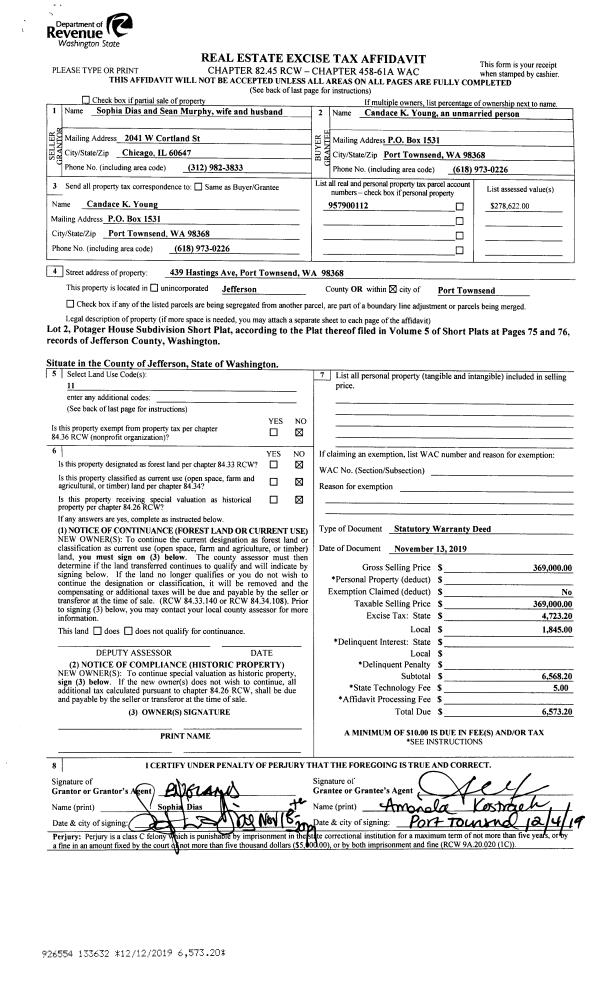 | 3 | 01/19/2009 | EASE | Assignment of Easement | DETHLEFSEN, GREGORY C | PUGET SOUND ENERGY INC | 0 | 0 | $500.00 | 112470 | 0 |