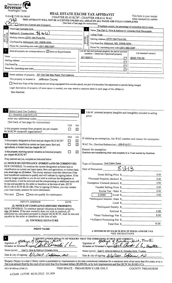 | Mailing Address: | PO BOX 65016 PORT LUDLOW, WA 98365-0016 | % Ownership: | 100.0000000000% |
