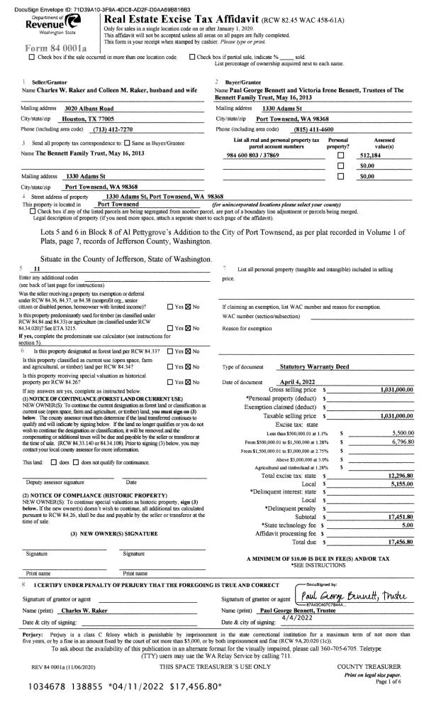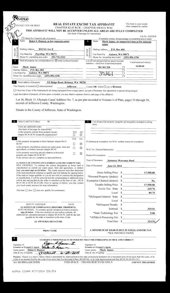 | 7 | 03/17/1994 | REC | Real Estate Contract | POPE RESOURCES | LLOYD, DEBORAH A | 0 | 0 | $69,500.00 | 73673 | 0 |