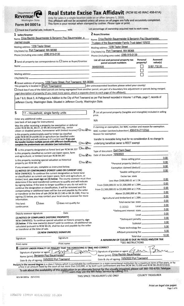 | Mailing Address: | 4503 OLD GARDINER RD PORT TOWNSEND, WA 98368-9778 | % Ownership: | 100.0000000000% |