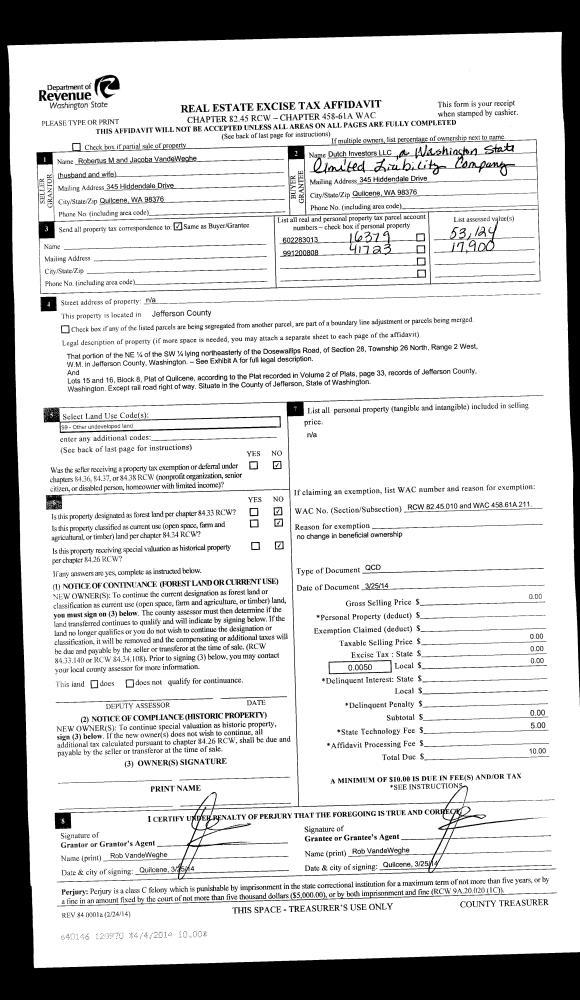 | Mailing Address: | 990 CHIMACUM RD PORT HADLOCK, WA 98339-9715 | % Ownership: | 100.0000000000% |