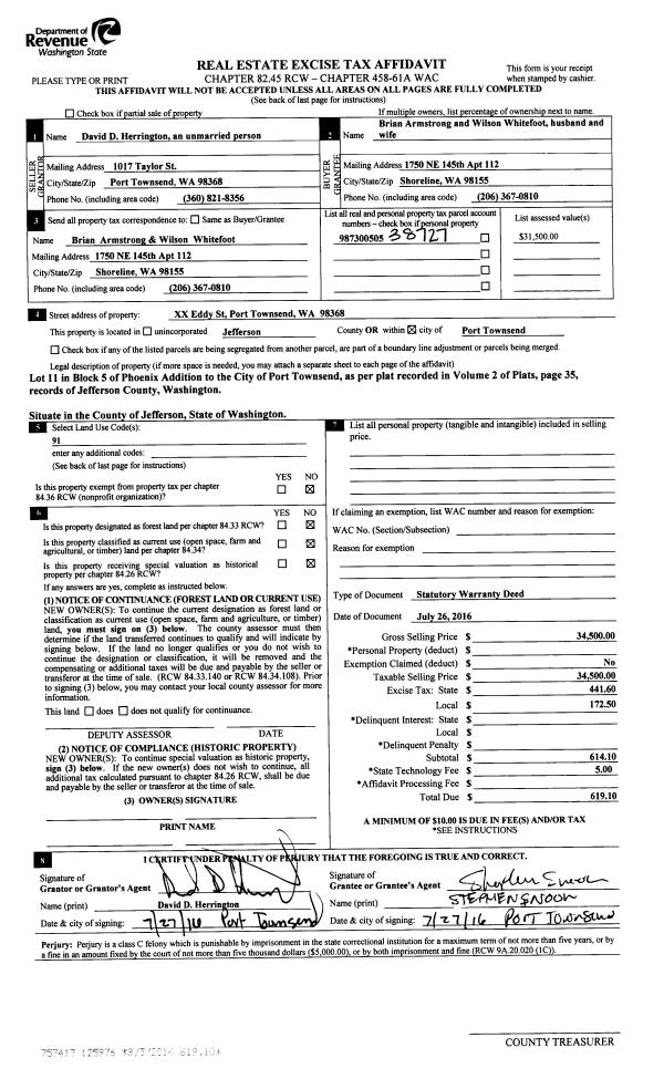 | 7 | 04/25/2002 | SWD | Statutory Warranty Deed | BONNIE BELLE ALDRED | LINNIA ARNTSON | 0 | 0 | $142,000.00 | 94561 | 0 |