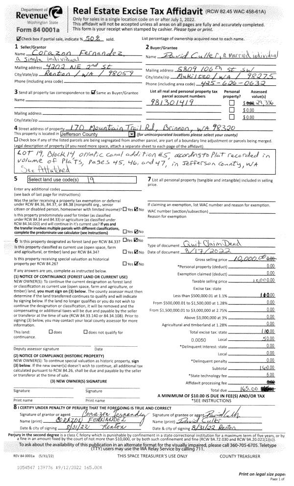 | Mailing Address: | 990 CHIMACUM RD PORT HADLOCK, WA 98339-9715 | % Ownership: | 100.0000000000% |
