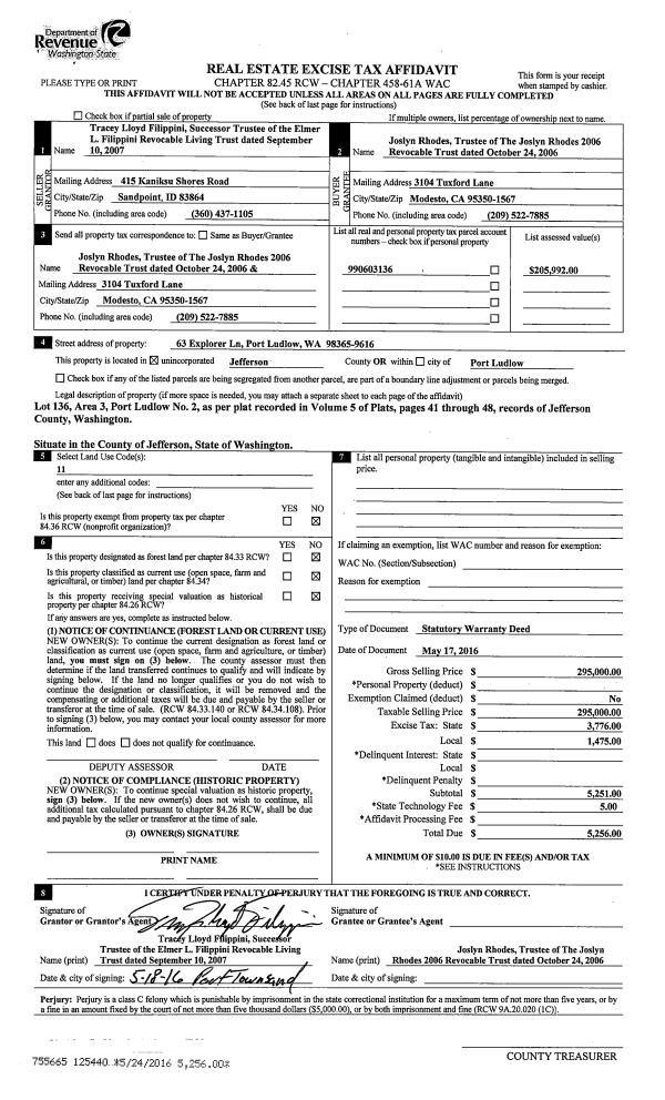 | Mailing Address: | REVOCABLE LIVING TRUST C/O DOUG LARSON 850 SHERRIFF'S HIDEAWAY FORKS, WA 98331 | % Ownership: | 100.0000000000% |