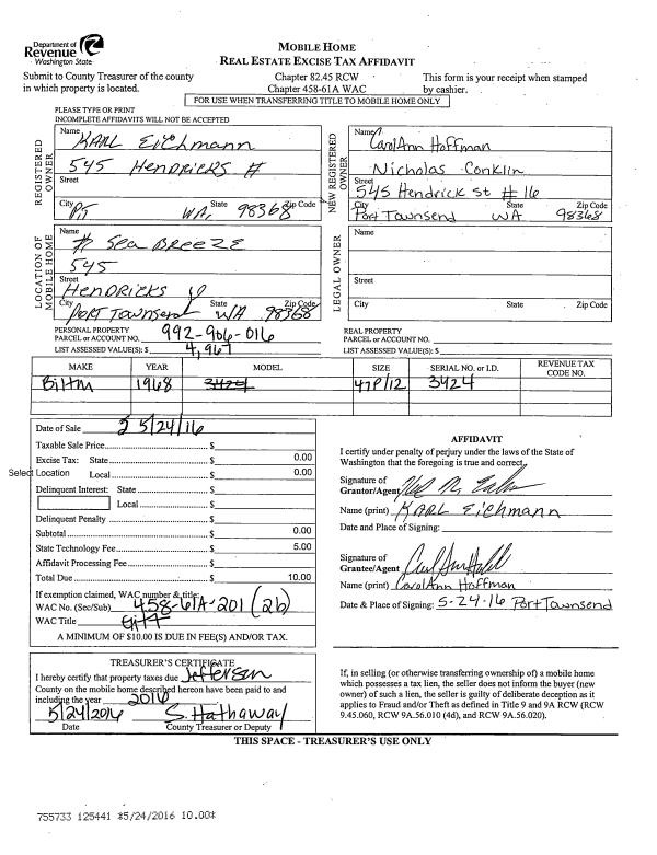 | Mailing Address: | REVOCABLE LIVING TRUST C/O DOUG LARSON 850 SHERRIFF'S HIDEAWAY FORKS, WA 98331 | % Ownership: | 100.0000000000% |