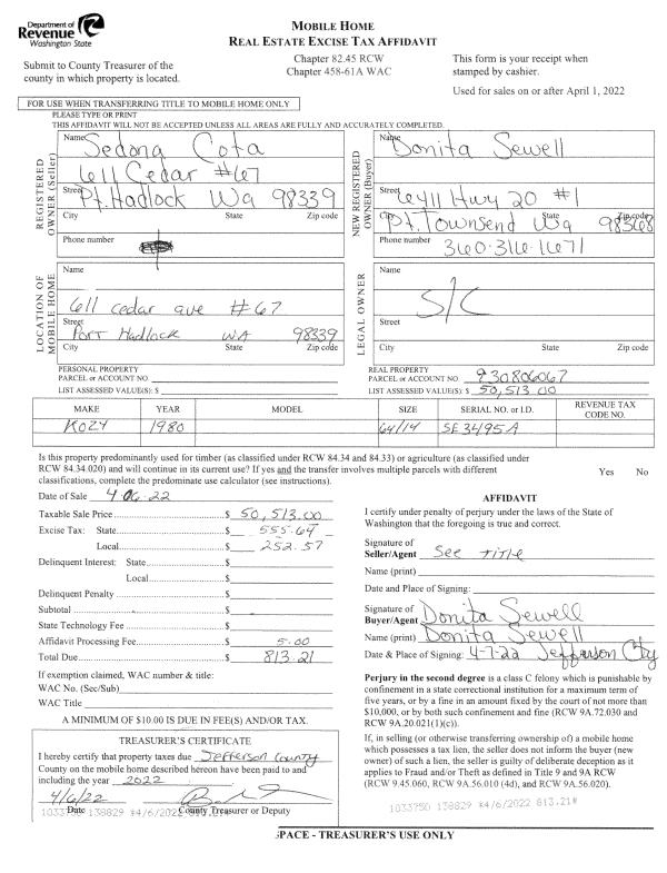 | Improvement #1: | Manufactured Home | State Code: | 11M | 1344.0 sqft | Value: | $79,051 |