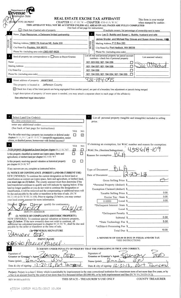 | Mailing Address: | 1322 PROSPECT AVE PORT TOWNSEND, WA 98368-2541 | % Ownership: | 100.0000000000% |