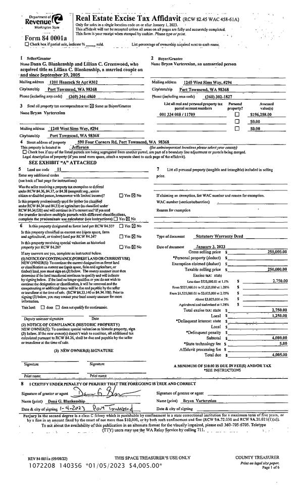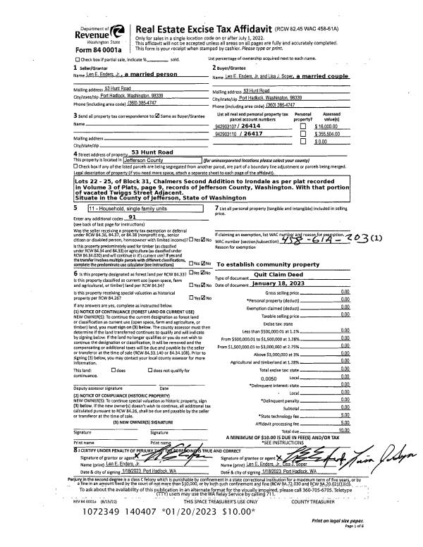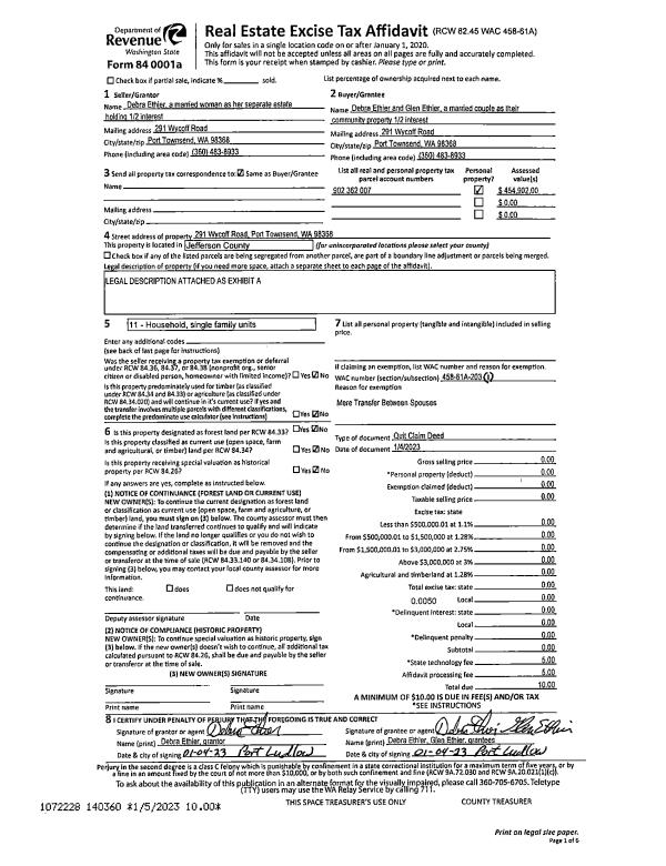 | 1 | 04/14/2005 | GRTD | Grant Deed | KAREN GATES HILDT TRUSTEE | JEFFERSON LAND TRUST | | | $289,000.00 | 103223 | 0 |