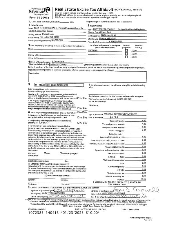 | Mailing Address: | WA ST NONPROFIT CORP PO BOX 85 PORT HADLOCK, WA 98339-0085 | % Ownership: | 100.0000000000% |