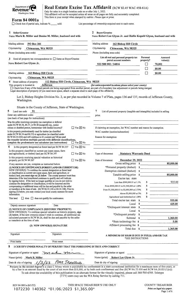 | Mailing Address: | 249 KENNEDY RD PORT HADLOCK, WA 98339-9719 | % Ownership: | 100.0000000000% |