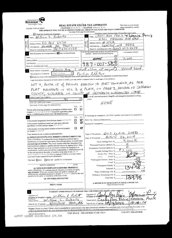 | Mailing Address: | 1305 E REPUBLICAN APT #3 SEATTLE, WA 98102-3318 | % Ownership: | 100.0000000000% |