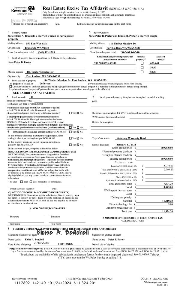 | Mailing Address: | 5413 STATE ROUTE 20 PORT TOWNSEND, WA 98368-8746 | % Ownership: | 100.0000000000% |