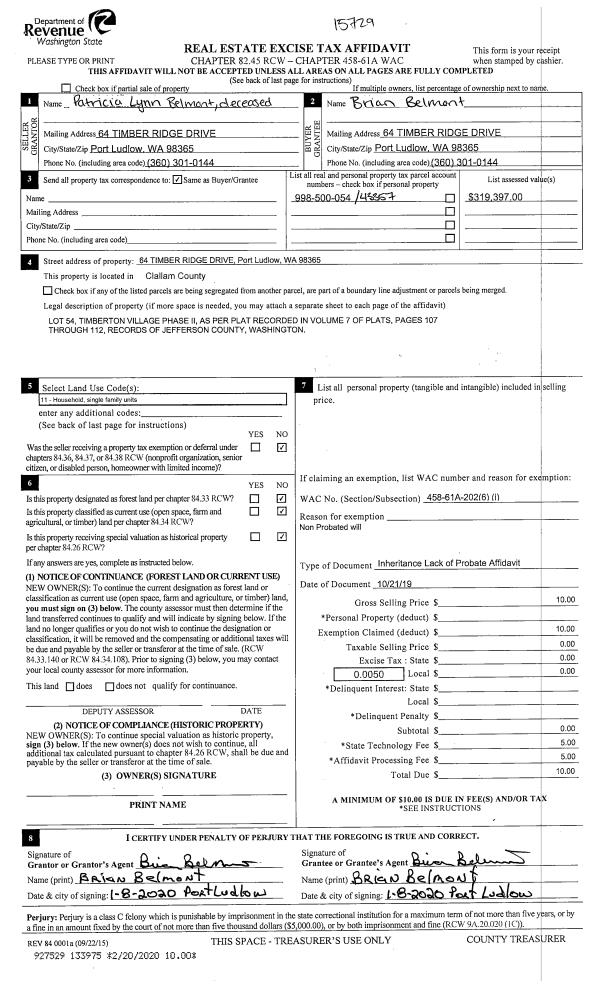 | 1 | 09/21/2020 | SWD | Statutory Warranty Deed | WILLIAM S MARLOW | JENNIFER S MULLER LIVING TRUST | | | $650,000.00 | 135198 | |