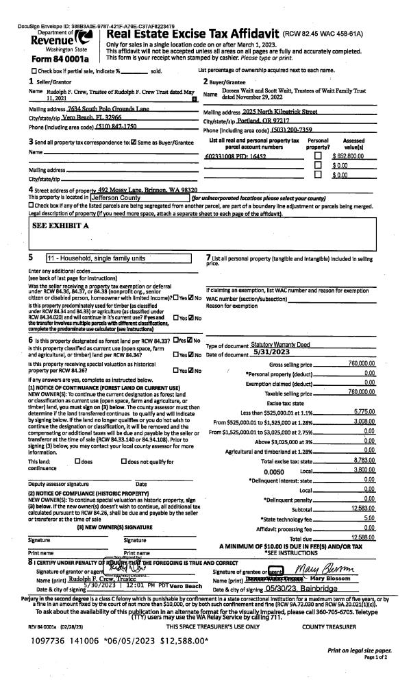 | Mailing Address: | BARBARA K JENSEN TRUSTEE MASOMENOS LIVING TRUST PO BOX 596 PORT TOWNSEND, WA 98368-0596 | % Ownership: | 100.0000000000% |