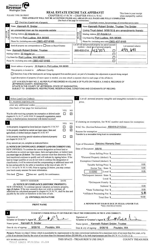| Mailing Address: | PO BOX 1220 PORT TOWNSEND, WA 98368-0920 | % Ownership: | 100.0000000000% |