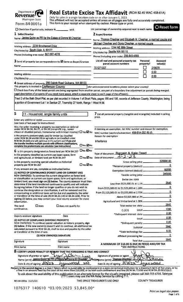 | Mailing Address: | 171 HILDA ST CHIMACUM, WA 98325-9727 | % Ownership: | 100.0000000000% |