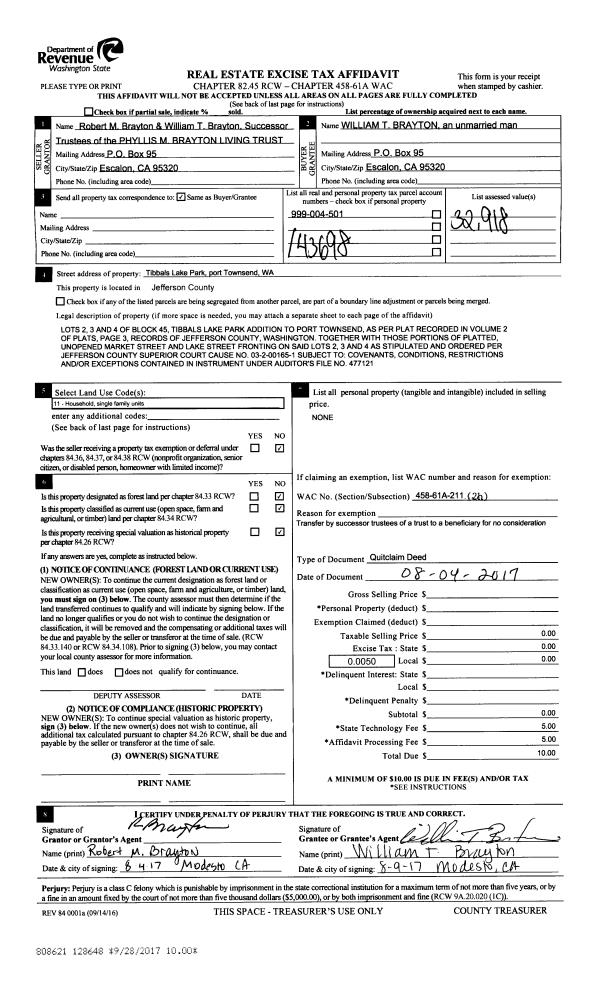 | 4 | 10/04/2017 | QCD | Quit Claim Deed | ALICE GUTHRIE | BEVERLY BROWN | | | | 129693 | |