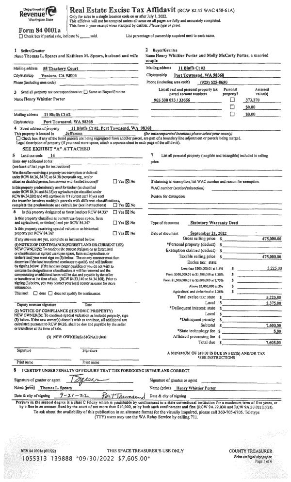 | Mailing Address: | DOUGLAS L JOYCE TRUSTEE LEESAN D JOYCE-MARLATT TRUSTEE 990 CHIMACUM RD PORT HADLOCK, WA 98339-9715 | % Ownership: | 100.0000000000% |