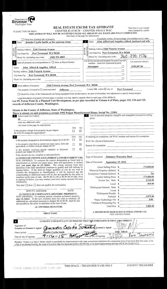 | Mailing Address: | 806 A STREET PORT TOWNSEND, WA 98368-6449 | % Ownership: | 100.0000000000% |