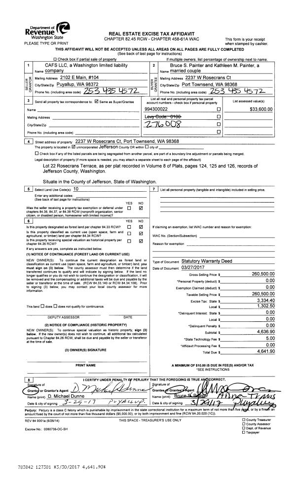 | 1 | 04/29/2016 | SWD | Statutory Warranty Deed | GREGORY A HARE | WILLIAM C WELLS | | | $420,000.00 | 125307 | |