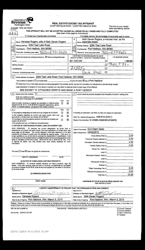 | Mailing Address: | 522 TOTEM RIDGE RD PORT HADLOCK, WA 98339-8711 | % Ownership: | 100.0000000000% |