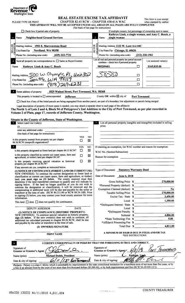 | Mailing Address: | 92 2ND AVE PORT HADLOCK, WA 98339-9673 | % Ownership: | 100.0000000000% |