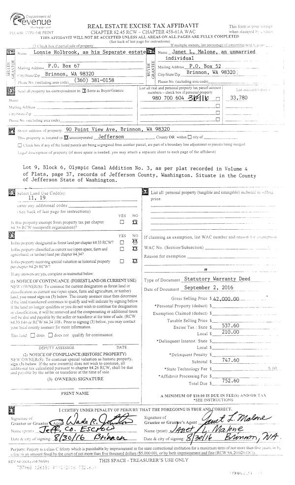 | 3 | 11/15/1993 | SWD | Statutory Warranty Deed | DISCOVERY TIMBER COMPANY | UNDERWOOD, BLAKE A/TARA D | 0 | 0 | $10,000.00 | 72780 | 0 |