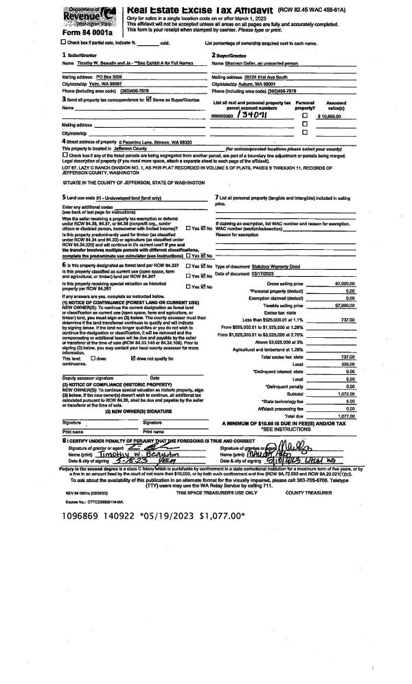 | Mailing Address: | VICKI L BERES 67 HADLOCK BAY RD PORT HADLOCK, WA 98339 | % Ownership: | 100.0000000000% |
