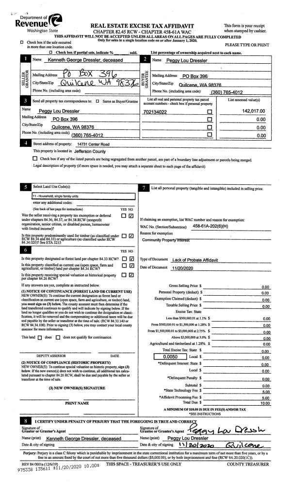 | 1 | 03/01/2021 | PRD | Personal Representatives Deed | EST OF CAROL BURWELL | PHILLIP BURWELL | | | | 136421 | |