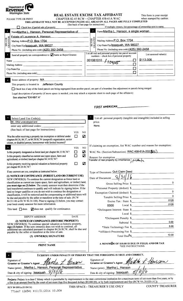 | 2 | 03/01/2008 | QCD | Quit Claim Deed | PENNINGTON, SHANNON S/MEL | LUND, HENRY L/RITA L | | | $0.00 | 111178 | 0 |