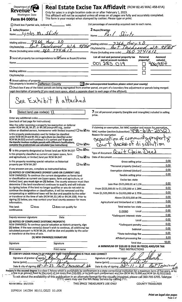| 1 | 10/27/2023 | SWD | Statutory Warranty Deed | PATRICK J SMITH TRUSTEE | CHIMACUM CORNER PROPERTIES LLC | | | $1,250,000.00 | 141808 | |