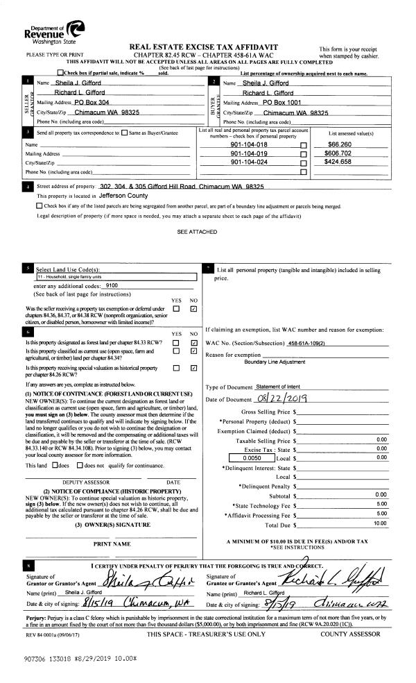 | Mailing Address: | 830 CENTER RD CHIMACUM, WA 98325-9710 | % Ownership: | 100.0000000000% |