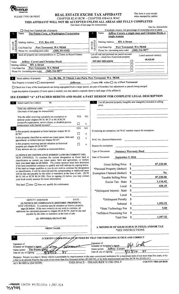 | Mailing Address: | 204 WADES LOOP CHIMACUM, WA 98325-9752 | % Ownership: | 100.0000000000% |