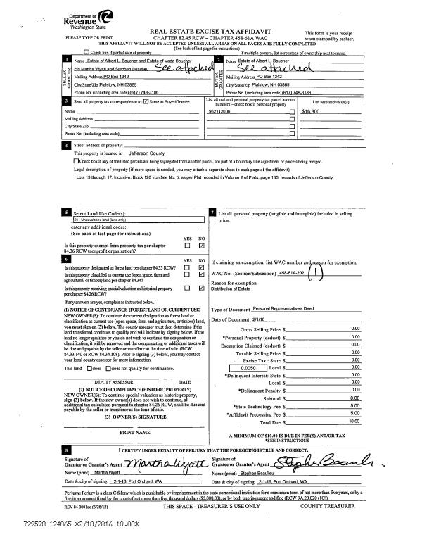 | Mailing Address: | 405 WILLOW ST PORT TOWNSEND, WA 98368-6418 | % Ownership: | 100.0000000000% |