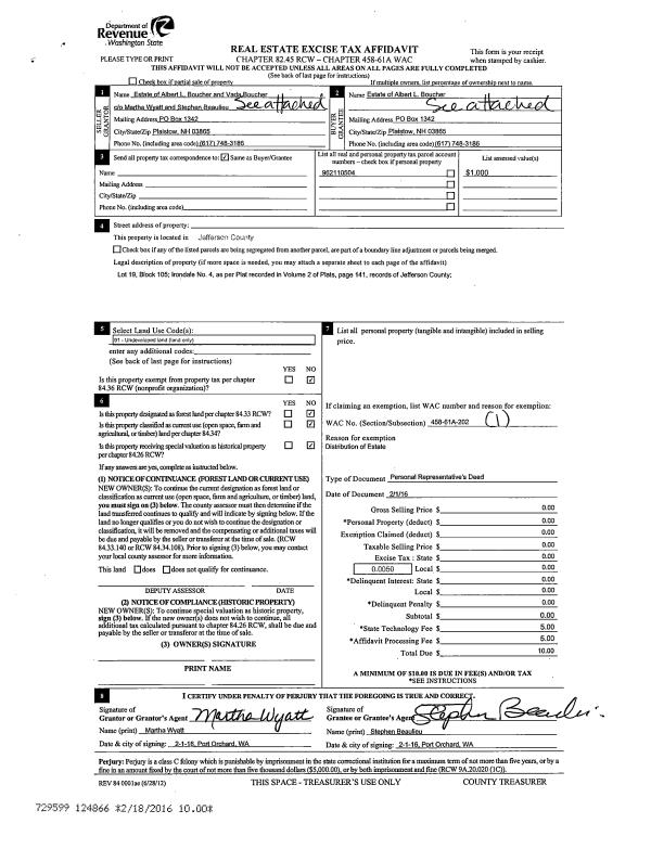 | Mailing Address: | 405 WILLOW ST PORT TOWNSEND, WA 98368-6418 | % Ownership: | 100.0000000000% |