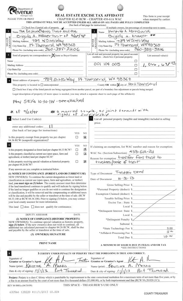 | Mailing Address: | 405 WILLOW ST PORT TOWNSEND, WA 98368-6418 | % Ownership: | 100.0000000000% |