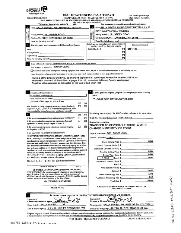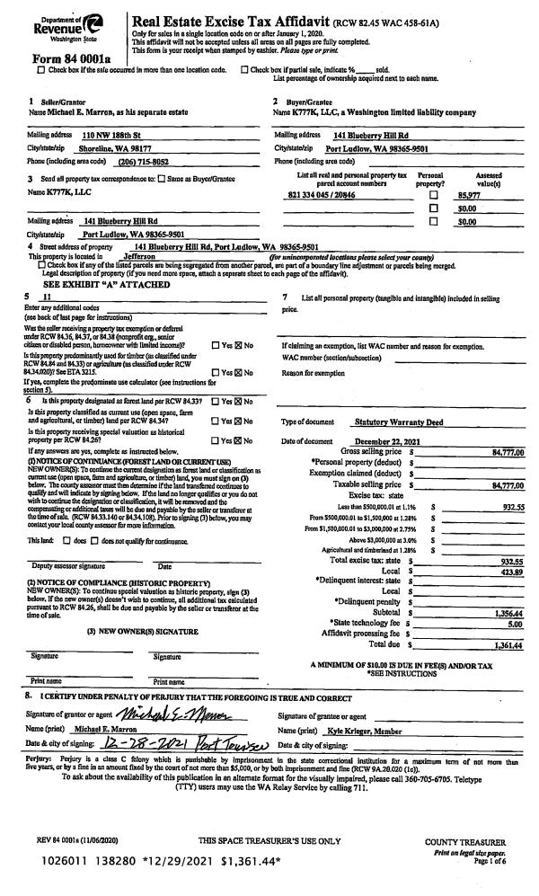 | Mailing Address: | 74 FAIRMOUNT HILL RD PORT TOWNSEND, WA 98368-8703 | % Ownership: | 100.0000000000% |