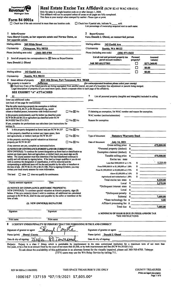 | 2 | 10/23/2019 | SWD | Statutory Warranty Deed | WALTER KAYLOR | DAVID N & ELEANOR M EDWARDS | | | $115,000.00 | 133393 | |
