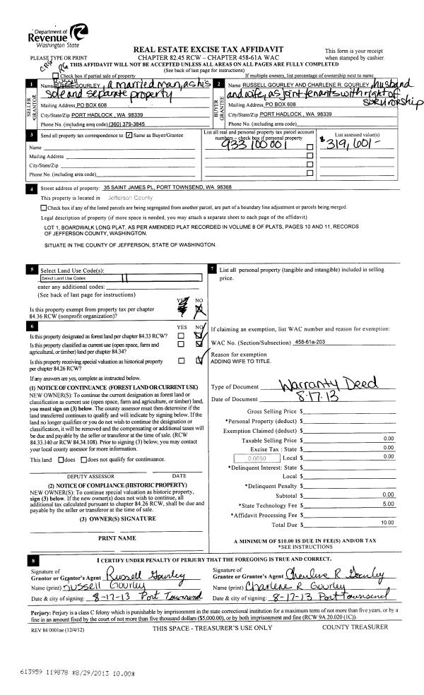 | 10 | 08/02/2013 | SWD | Statutory Warranty Deed | | | | | | 120093 | |