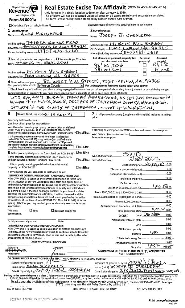 | Mailing Address: | JUNE A NIQUETTE LIVING TR 9/28/2022 C/O DENISE ELDRIDGE PO BOX 324 CHIMAUCM, WA 98325 | % Ownership: | 100.0000000000% |