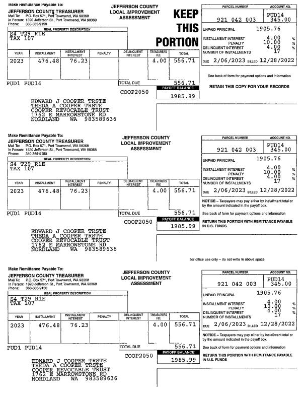 | Mailing Address: | 91 FOSTER ST PORT HADLOCK, WA 98339-9519 | % Ownership: | 100.0000000000% |