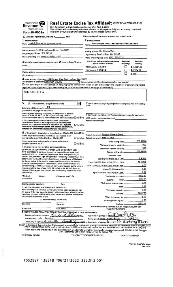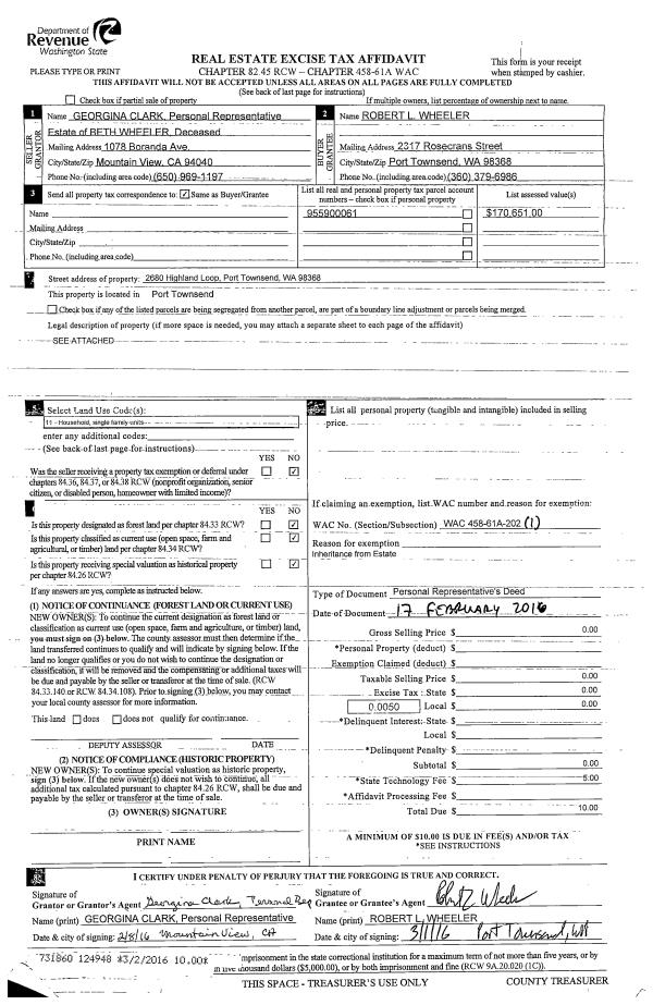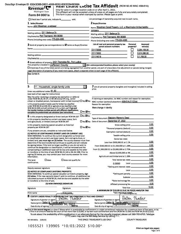 | Mailing Address: | 1033 LAWRENCE ST PORT TOWNSEND, WA 98368-6523 | % Ownership: | 100.0000000000% |